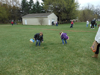 Today was our annual Easter egg hunt at Commerce Church of the Nazarene. However, this year we got a sweet movie first! I think that was new... maybe I just don't remember it from last year. Tyler and Daisy were a little bored with it I think, but they were amped for the egg hunt! I mean who wouldn't be... It's free candy!